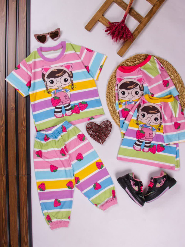 تیشرت شلوار نخی بچگانه دخترانه توت فرنگی