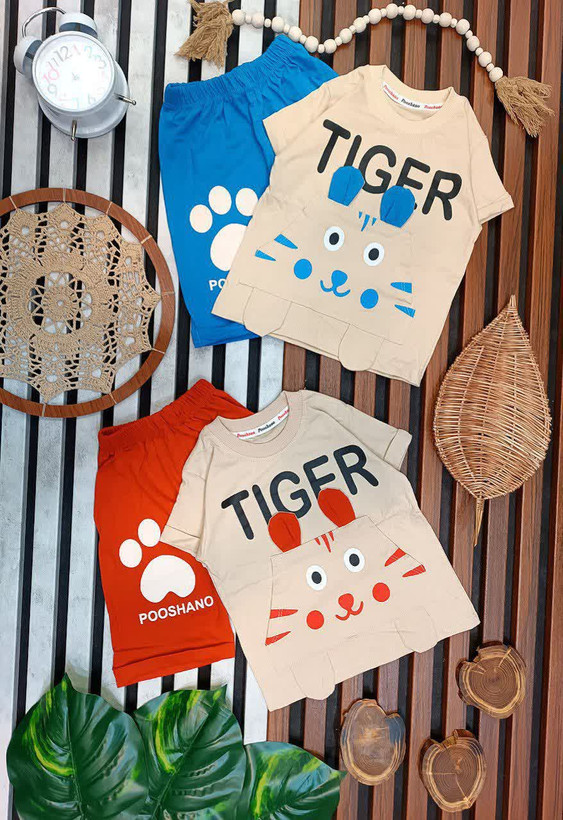 تیشرت شلوارک نخ پنبه اسپرت بچگانه طرح تایگر